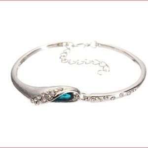 Ladies Charming Blue Rhinestone Silver Hand Chain Stylish Bangle Crystal Bracelet for Lover