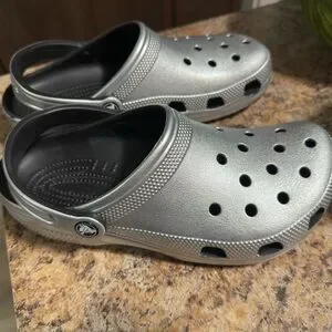 Stylish and comfortable kids clogs in a sleek silver color. Perfect for everyday wear.