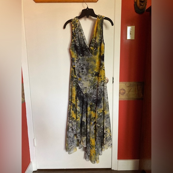 Fits nicely through the hips and is cut asymmetrically from the hips down.