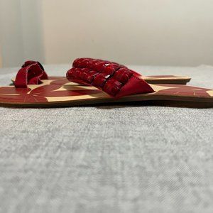 Ladies Flat Sandals Red and Tan Bedazzled Size 8