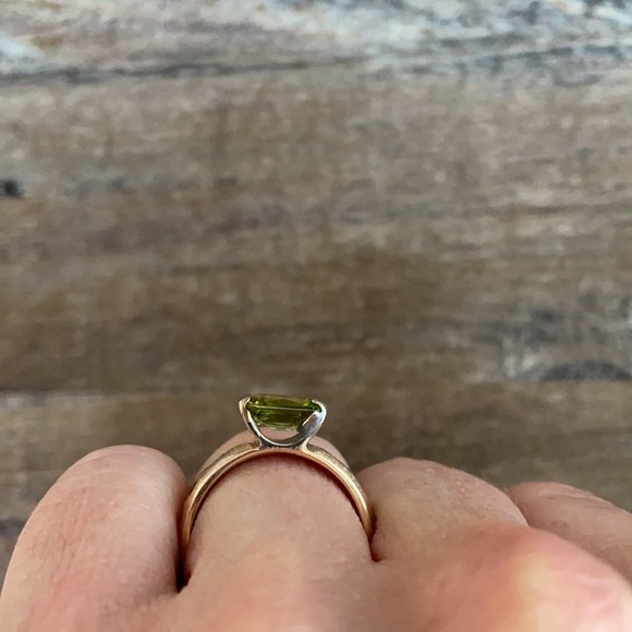 * 1/2 bezel setting with Emerald cut Peridot ( see appraisal papers for size / weight/ clarity / cut)