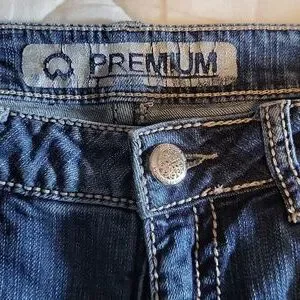 another nice pair of Warehouse One Premium denim ladies jeans. more of a light washed look to these jeans. still in really good shape no holes and not Frayed on the bottom of the leg. cute detail on the back pocket. consider it a straight leg boot cut. 33" leg