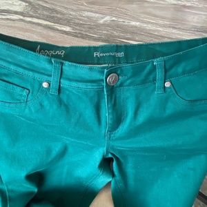 Gorgeous teal green jegging from Revolution by Ricki's. Size 31, inside leg 30" button and 3" zipper, fake front pockets, 2 back pockets.