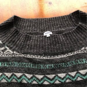 Ladies Kismet Black, green and Gray off shoulder, fair isle sweater medium