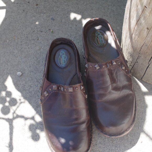 Dark brown color leather studded clogs .By Durango ,size 71/2 in good condition.