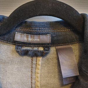 A dark blue denim wash jean jacket with much detail at the collar, oversize button pockets, and back flap for easy movement. Signature buttons are found on the sleeves and are functional down the front of the jacket. This jacket is in excellent used condition.