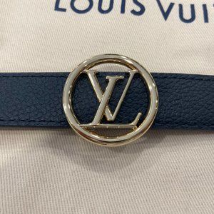 LV Circle 20mm Reversible Belt; Monogram and Black. Belt Size: 32. Product ID: M0300W. Brand new, never worn before. Official receipt is available upon request.