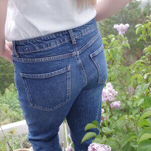 Ladies MNG medium washed jeans in good shape size U.S 8,straight fit ,relaxed,100% cotton ,made in the Pakistan.