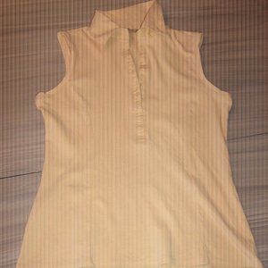 RW & Co Ladies lemon color sleeveless top with a collar and a v neckline