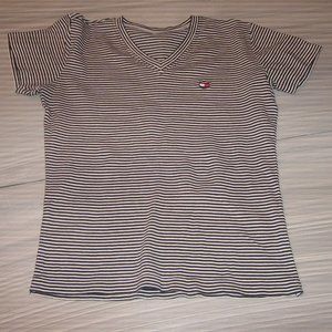 Tommy Hilfiger dark blue and white striped top with short sleeves