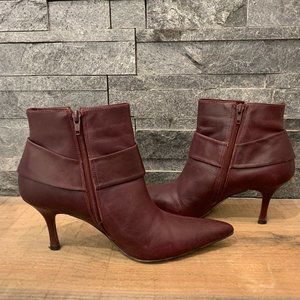 Ladies beautiful Vianni Collection merlot leather ankle boots, size 39. Just under 3.5" heel, has zippers on the inside. In excellent used condition, smoke free home.