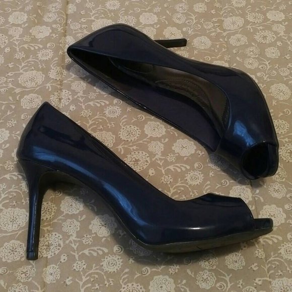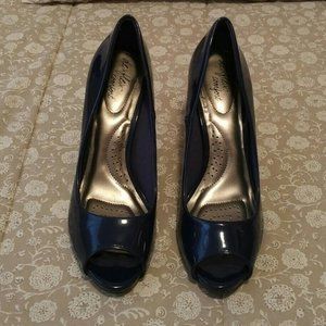 Ladies Midnight Blue Patent Peep-Toe Pumps, Dex-Flex, Size 8