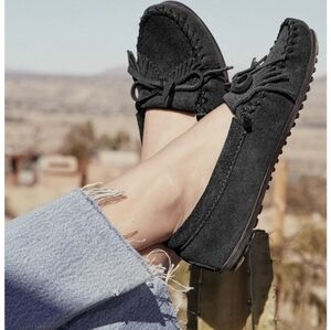 Make it a moccasin--the ultimate comfort shoe. Soft suede with fringed flap, whipstitch detail, cushiony padded insole. They are so comfortable, versatile and practical. Pair with dresses, jeans or shorts for relaxed casual style.
