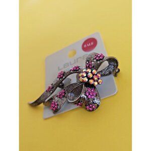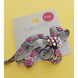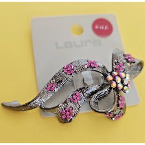 Ladies Multi-Color Red Rhinestone & crystal Bow Shape Brooch 3" x 1 3/4"