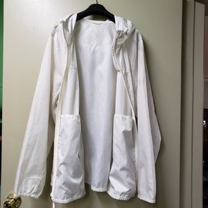 Ladies Off White Light Hooded Shell Jacket With Zipper, Spring/Summer