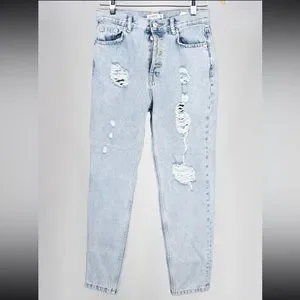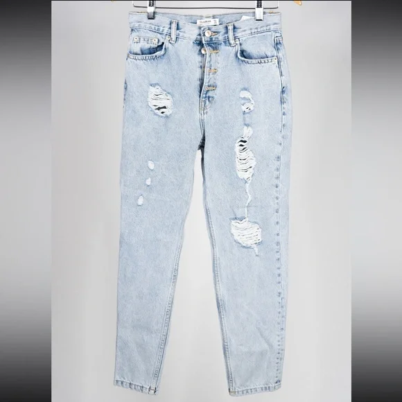 Ladies Pull&Bear Distressed Light Wash Jeans Size- 4 100% Cotton