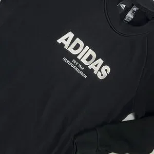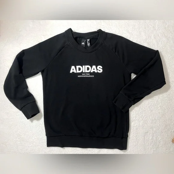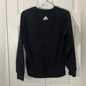 Athletic and trendy, this Adidas black crewneck is perfect for workouts or casual wear. Features a comfortable and flattering fit.