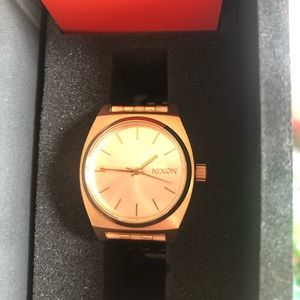 Brand new still in the box, never worn rose gold Nixon watch. The strap is adjustable & the back of the watch still has plastic on it. Retails for $140.