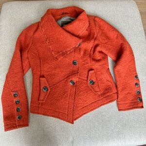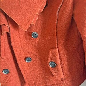 Beautiful fall / spring jacket, rust colour, Wool polyester blend with acetate lining. Sandwich brand.