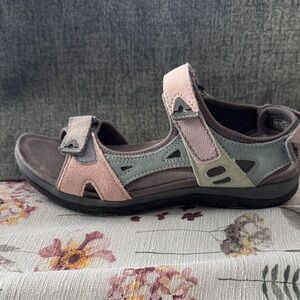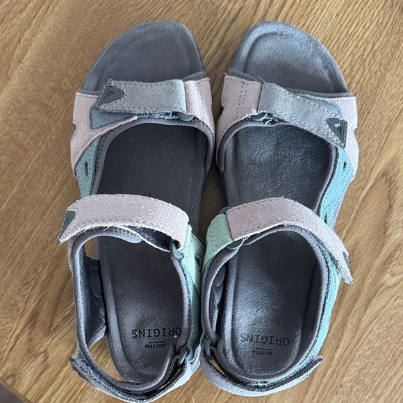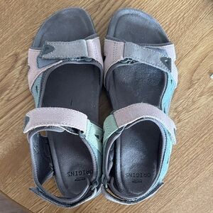 Comfortable and stylish Earth Originals ladies sandals featuring a blend of pastel colors. Perfect for everyday wear.