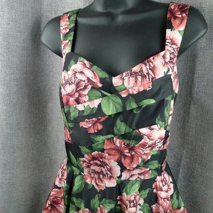 Ladies Sleeveless Fit And Flare Floral Dress Large