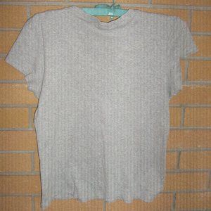 Perfect Fit tee shirt with cap sleeves in grey cotton, V neckline.