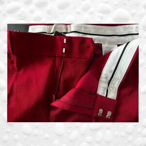 Elevate your wardrobe with these chic Sloan Fit trousers from Banana Republic. With a deep red plain pattern, these trousers boast a tailored style with a small side slit at the outer bottom seam. Designed to flatter with their low rise and stretch fit, they offer a slim ankle silhouette.