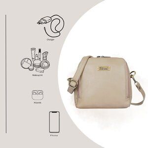 Ladies Taupe Crossbody Sling Bag – Leather Over the Shoulder Purse for Handbag