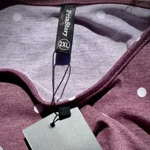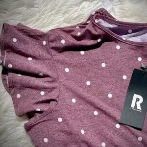Adorable Purple, Polkadot Short Sleeved Top Loose Fit Ruffle Detail On Sleeves Crew Neck Blend Of Polyester, Rayon and Spandex Size 2XL Brand New, Tags Still On!