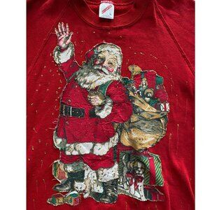 Vintage 1980s Sweatshirt with Handmade Christmas Xmas Santa graphic.