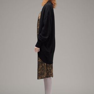 This is very soft, fine-knit cocoon style wrap with shawl collar - drapes beautifully, goes with anything. Hemp and organic cotton knit.
