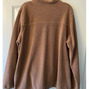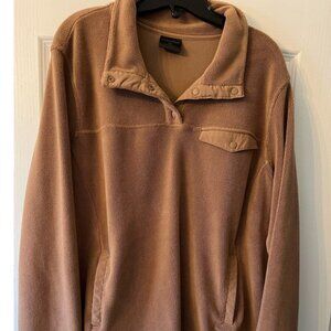 Light brown (fawn) colored ladies fleece pullover made by 32 Degrees. Very soft. Has snap front neckline, chest pocket and bottom kangaroo pockets. Like new.