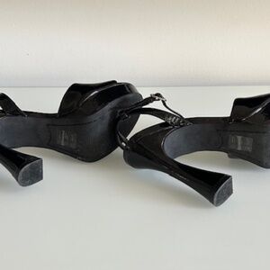 Ladies black patent heels with wrap around strap - Size 7.5 M