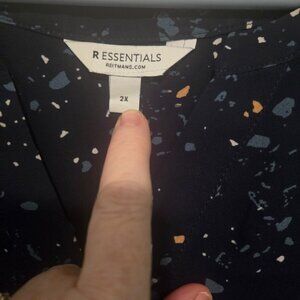Navy blue ladies blouse. Split neck with cap sleeves. 100% polyester. Hand wash, hang to dry.