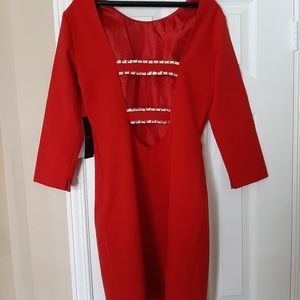 Brand new dress long sleeves evening wear or any occasion. Very nice looking and elegant. 85% viscose 15% polyester lining. Open in the back with shiny stones .It will match your wardrobe. It is European size 40