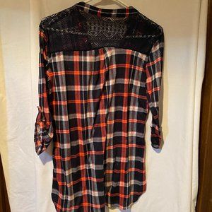 Ladies plaid flannel top with lace insert in back open to offers and bundles if you don’t like my price please make me an offer