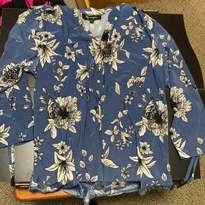 Blue floral 3 button down top