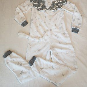 Ladies one piece unicorn pajama, whit/silver with hood, size XS, gently worn