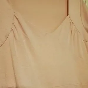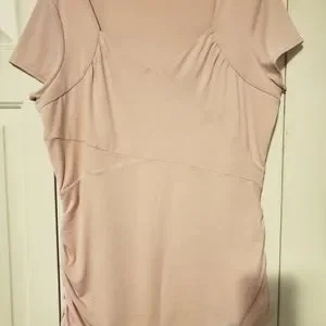 ladies top, pale pink fitted, lined inside, rouched sides. The top is in excellent and worn a couple times