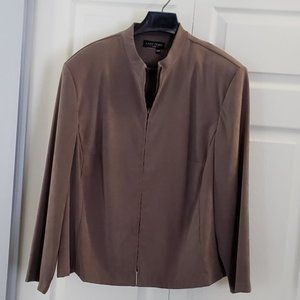 Parting with my babied Lady Dorby jacket.Sz 24 petite. Very stylish lightweight soft jacket. Pale tan in colour with lining. Zip up front. No pockets. Goes with skirt or jeans and cream blouse underneath. Soft shoulder pads. Slightly fitted with side seams, not stretchy. Sits just at my hips, I'm 5-8.