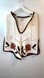 Chunky cream knit with popcorn stitch texture, black-brown and taupe trim, and red-and-blue floral crochet motifs at the hem.