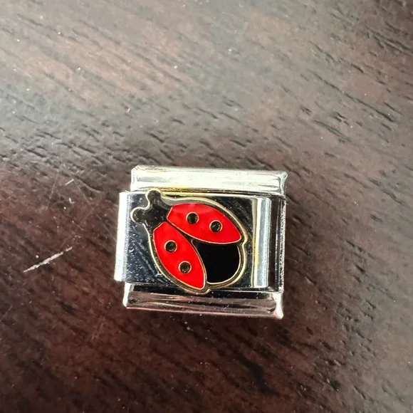 Add a touch of luck and charm to your Italian charm bracelet with this adorable red and black ladybug link. Crafted from durable stainless steel, this 9mm charm features a vibrant enamel design with gold-tone detailing. The ladybug is a symbol of good fortune and joy—perfect for personalizing your collection or gifting to someone special.