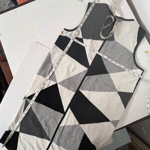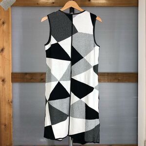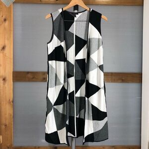 LAFAYETTE 148 NY Black White Geometric Print Long Vest Duster Sleeveless Open Knit Cardigan Sz M