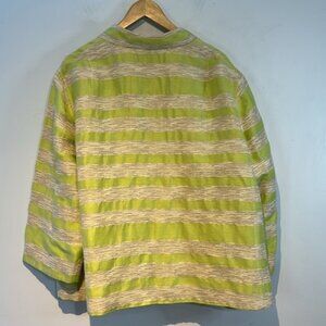 Lafayette 148 Blazer Jacket Womens Green Cream Stripe Linen Blend 3/4 Sleeve 3X