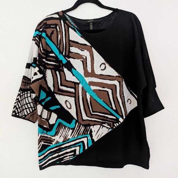 Lafayette 148 NY Women's Multi-Colored 2/3 Sleeve Top 100% Cotton Blouse Size M.