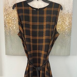 Lafayette 149 New York Fine Plaid Crepe Fit & Flare Midi Dress. Size: 12. Color: Black Multi. 100% polyester (Italian origin).