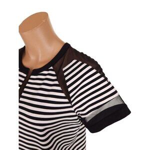 Lafayette 148 Short Sleeve Striped Zip Front Top Size Small Black White $298US