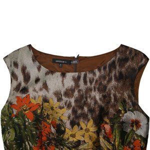 Lafayette 148 Women's Size 10 Leopard Print Floral Fitted Midi Sleeveless Dress