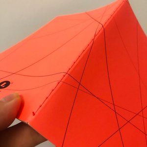 Bright neon orange notebook, made by Lagerhaus Sweden, 4x6 inch, 30 lined pages, stitch bound.
