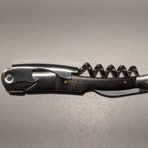 Laguiole multi tool, corkscrew, small serrated knife, bottle opener. Dark brown handle. In working condition. Barely used. 4.5" long. Stainless steel. Made in France. Comes without case.